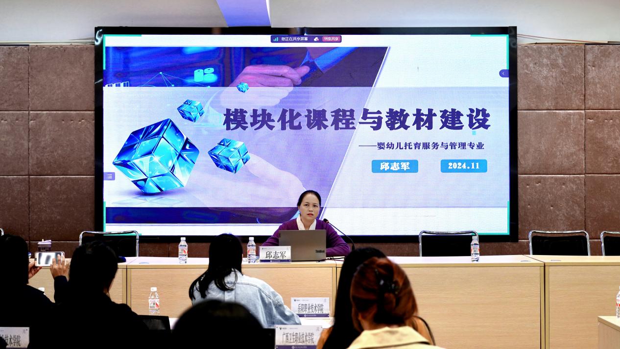 国家级教师教学创新团队负责人、国家职业教育助产专业教学资源库负责人,岳阳职业技术学院二级教授邱志军针对婴幼儿托育服务与管理专业展开模块化课程体系研讨并发布建设任务。同时,对资源库建设的后段工作安排进行了详细部署。