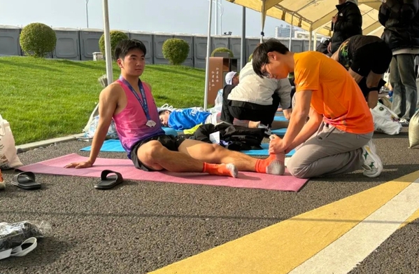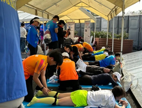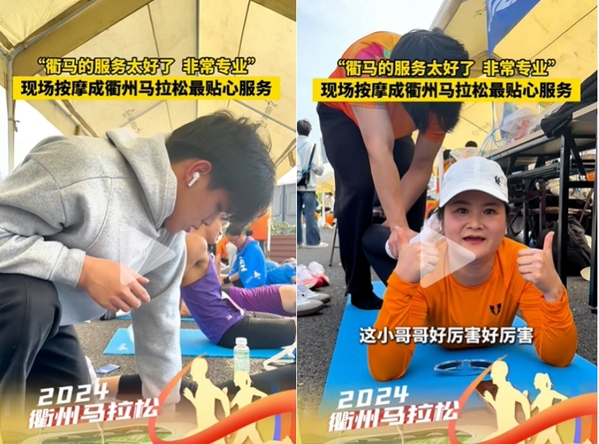 凌晨四点,当城市还沉浸宁静之中,志愿者同学们已经整装待发,他们带着对体育的热爱和对志愿服务的热情,迅速集结完毕,并奔赴各自负责的服务岗位。121名志愿者均来自衢职院休闲体育专业和体育运营与管理专业,他们将课堂上学到的专业运动知识运用到了实践中,为参赛运动员提供了冰敷、拉伸放松等专业服务。同学们专业的手法和热情的服务赢得了参赛运动员的高度赞誉。现场运动员纷纷表示,“现场按摩是衢州马拉松最贴心的服务”,志愿者的按摩手法“非常专业”“很厉害”。