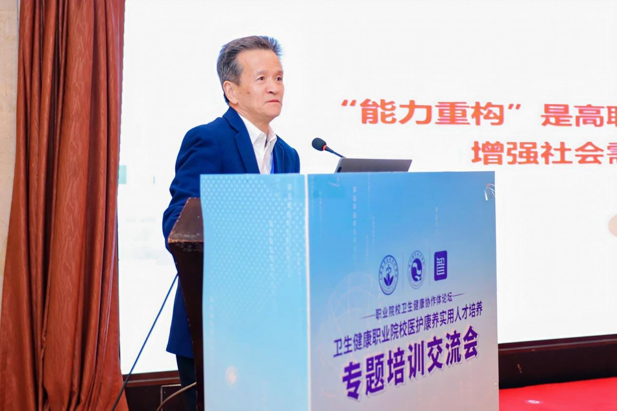 全国医护康养服务能力重构研究中心主任、病原生物与免疫学科国家二级教授胡野作题为《“能力重构”是高职卫生健康类专业增强社会需求匹配度的重要环节》主题报告。