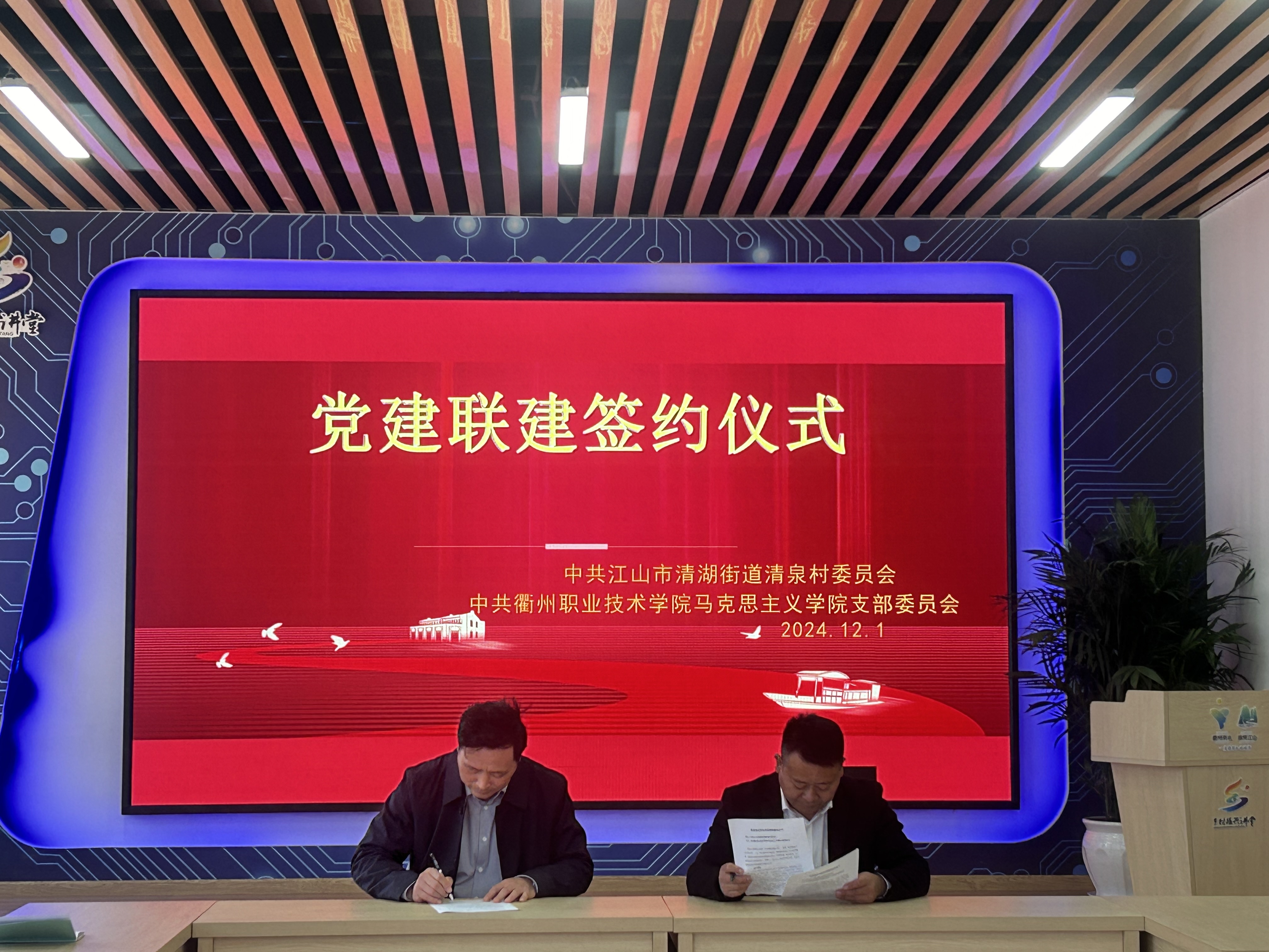 为建立长效合作机制,马克思主义学院党支部书记邵方益和清泉村党委书记吴香华分别代表马克思主义学院党支部和清泉村党委签订“校地基层党组织党建联建协议书”,进一步探索通过组织联建、活动联办、人才联育、资源联用、产业联促、治理联抓等方式,增强双方的联系和交流,逐步实现双方之问优势互补、工作互动、资源共享、双向共赢。