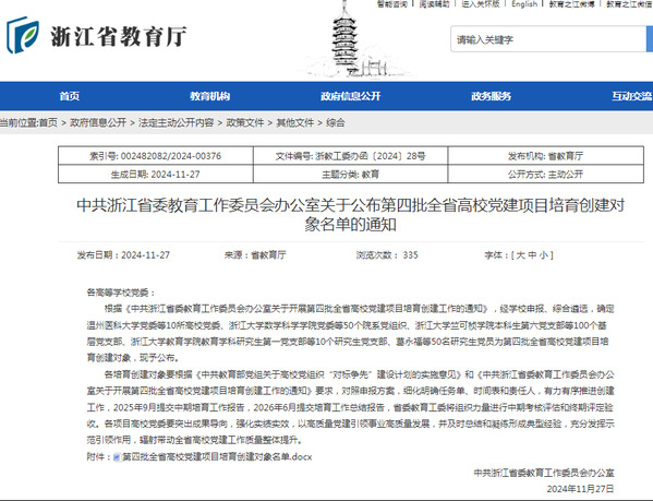 近日,中共浙江省委教育工作委员会办公室公布了第四批全省高校党建工作培育创建单位的名单,我校艺术设计学院党总支成功入选全省党建工作“标杆院系”培育创建单位。