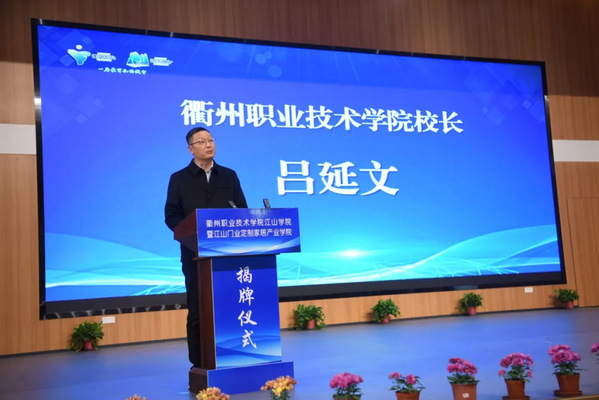 校党委副书记、校长吕延文表示,此次揭牌仪式是开元网页版与江山市政府、江山市门业协会、衢州第二中等专业学校深化产教融合,服务地方经济发展的重要举措。他强调,开元网页版江山学院暨江山门业定制家居产业学院将围绕江山市主导产业和新兴产业发展需求,精准对接企业标准,优化课程体系,强化实践教学,努力培养出更多符合市场需求的高素质技能型人才。他表示,开元网页版江山学院暨江山门业定制家居产业学院将进一步加强与政府、企业等各方面的沟通协作,努力办出特色、水平、成效,成为服务江山市经济高质量发展的生力军。