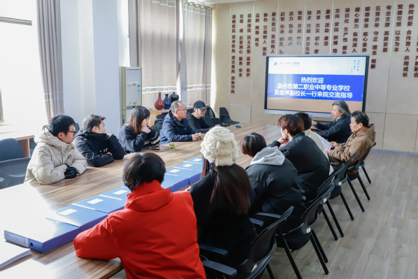 12月9日上午,温州市第二职业中等专业学校副校长吴俊声、数字影像技术专业教研组长叶扬、温州筱城文化艺术总监时风一行来艺术设计学院考察交流。艺术设计学院院长叶云龙、副院长潘宇及相关教师等陪同考察。