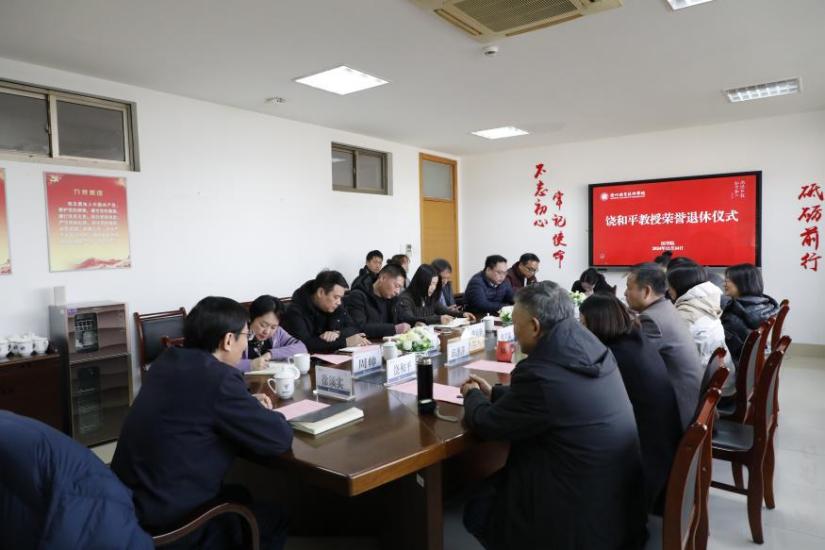 12月24日下午,医学院举行我校二级教授饶和平同志光荣退休仪式,校党委书记徐须实,党委委员、组织部部长周帅,人事处处长林繁昌,医学院院长邱惠萍及班子成员、余文富等教师代表参加,医学院党总支书记洪兴华主持。