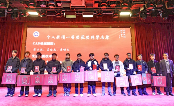 魏小华宣布表彰决议,本次文化节总共有机械制图、先进成图技术3D、汽车发动机机械维修、工业机器人技术、传感器设计与应用、新材料智能生产与检测、数字化设计与制造7个赛项,通过各项赛事评委评审、复审,共评出一等奖24人、二等奖41人、三等奖55人,决定对在文化节各项赛事中取得优异成绩的学生和指导教师进行表彰。