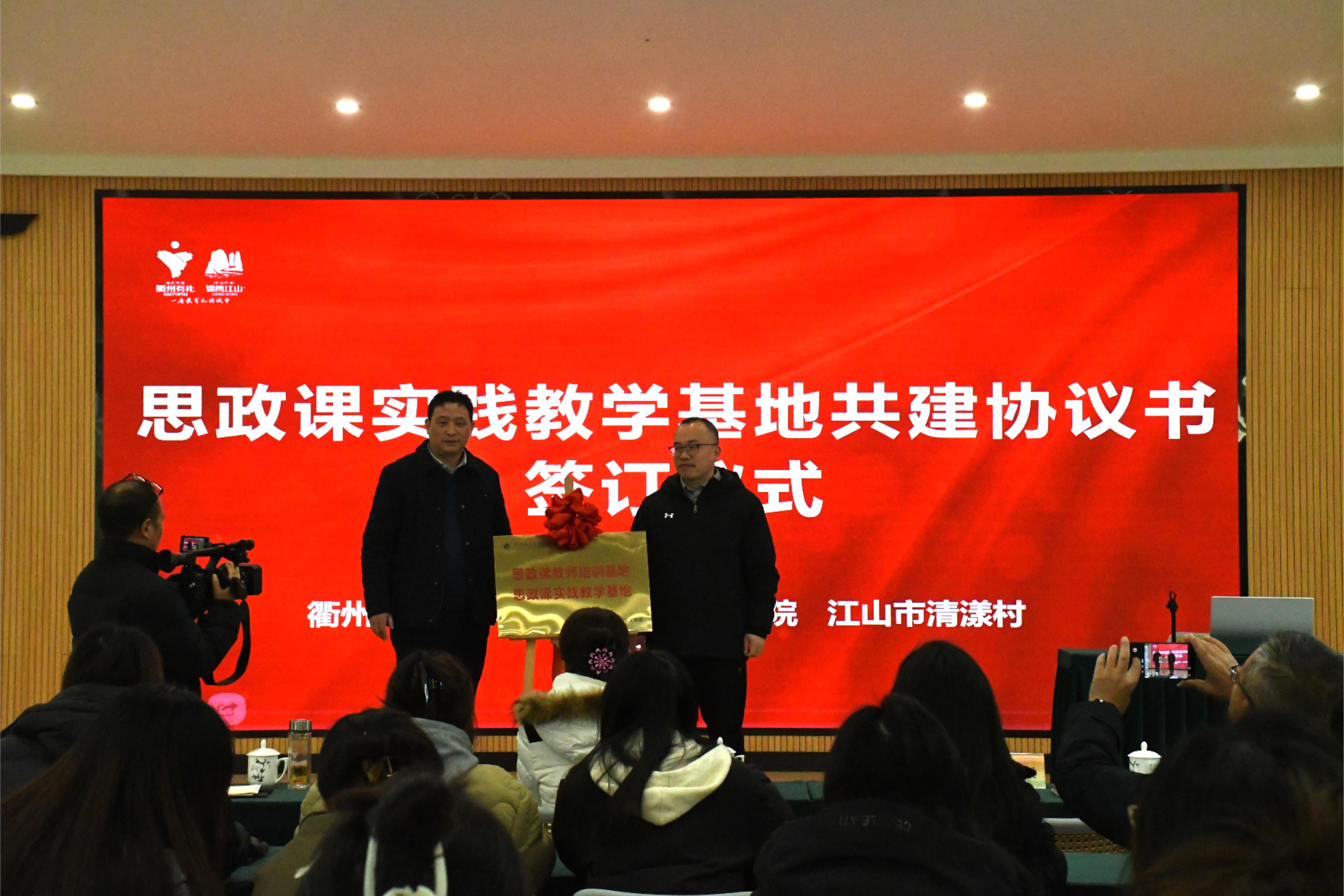 近日,马克思主义学院思政课教师培训(思政课实践教学)基地揭牌暨共建签约仪式在江山清漾村举行。马克思主义学院与江山市清漾村开展合作共建,共同推进“大思政课”建设。马克思主义学院全体教师,石门镇干部,清漾村干部,峡口小学、石门初中、石门小学教师代表参加本次活动。