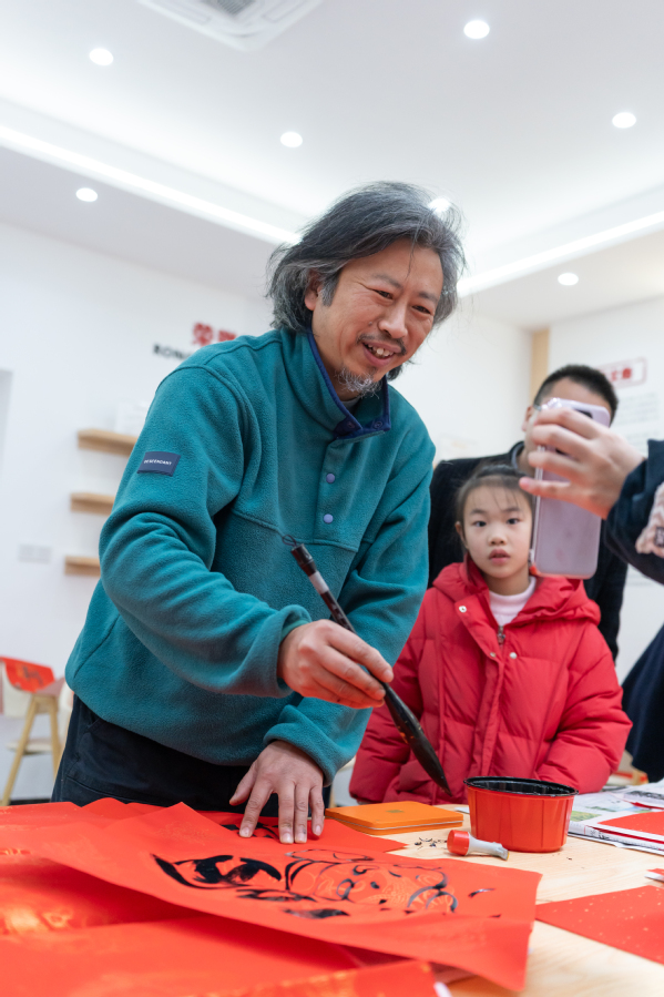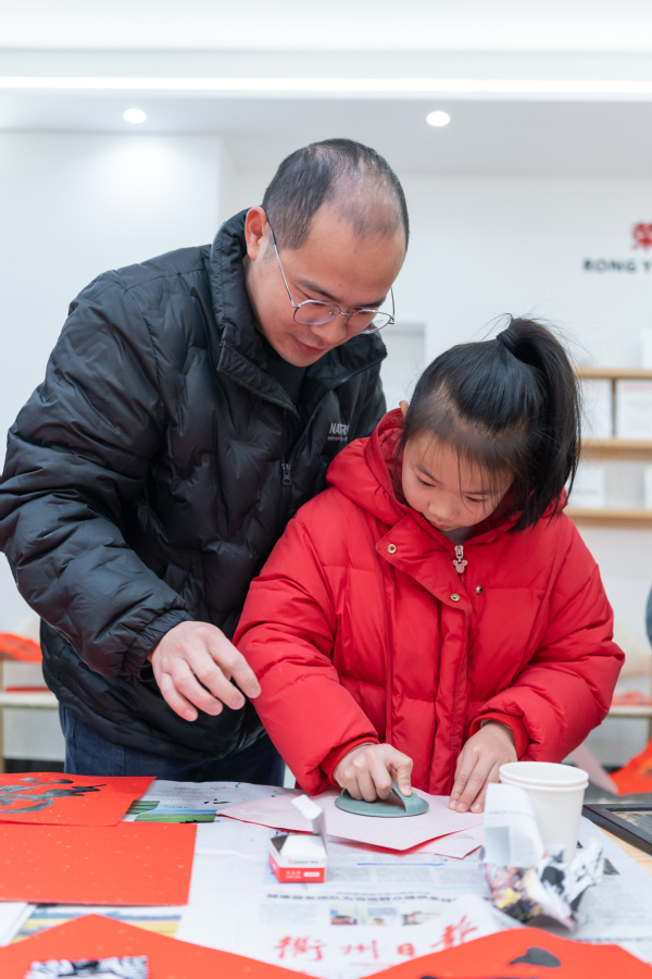 在活动现场,书画协会的老师们挥毫泼墨,书写了一幅幅充满祝福的“福”字和对联,洋溢着喜庆的氛围。师生们纷纷排队领取属于自己的新年礼物,脸上洋溢着幸福的笑容。这些亲手书写的“福”字和对联不仅传递了美好的祝愿,更增进了师生之间的感情交流。