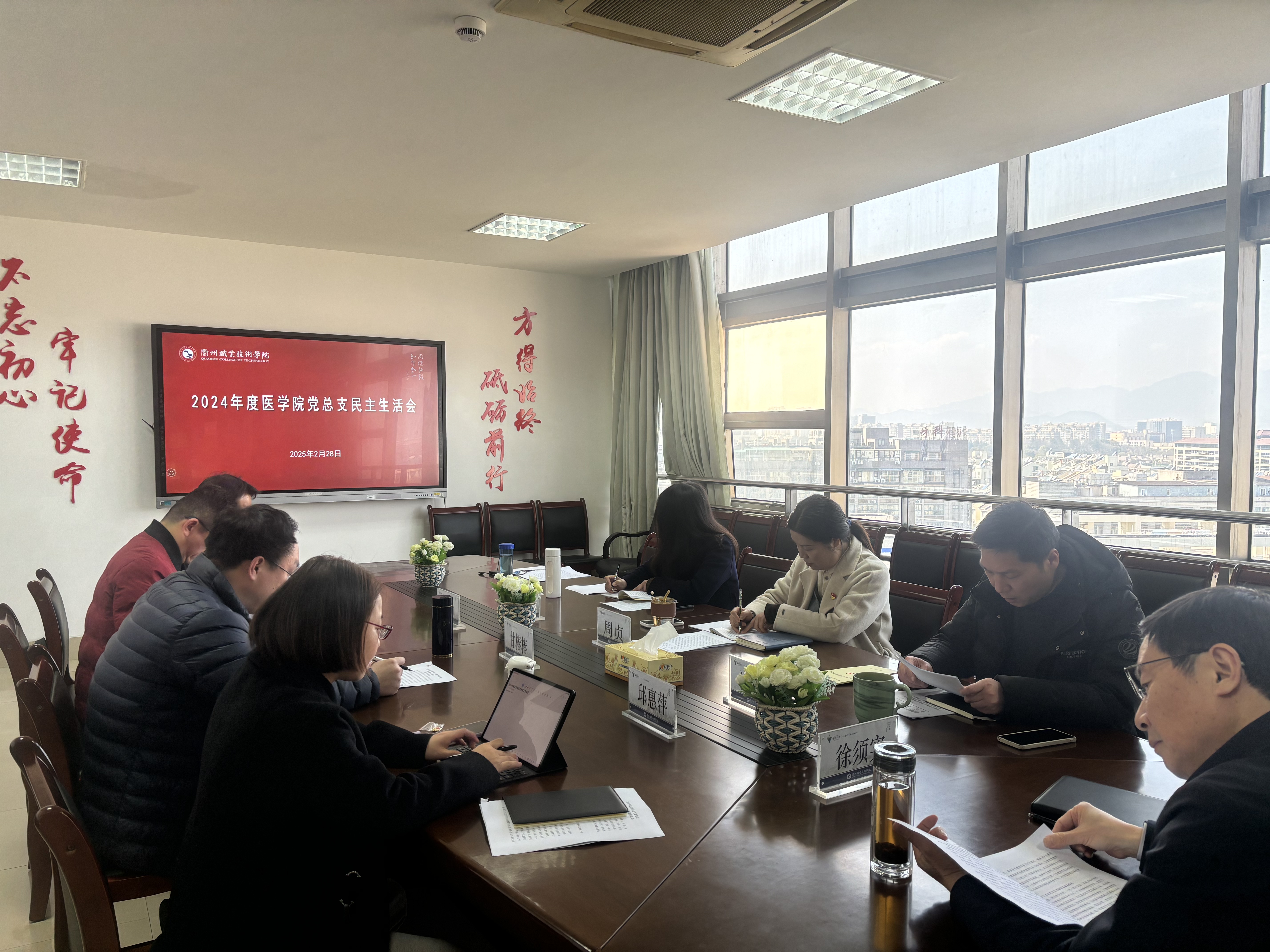 2月28日下午,医学院党总支召开2024年度民主生活会。校党委书记徐须实到会指导,医学院班子成员、党总支委员参加,党总支书记洪兴华主持。