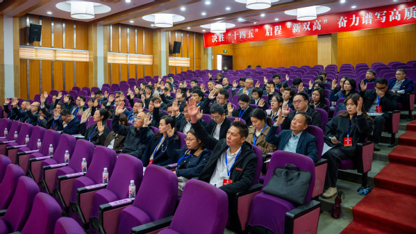 徐须实指出,2025年,是十分重要而特殊的一年,既是贯彻全国和全省教育大会精神、落实教育强国建设规划纲要关键之年,也是“十四五”收官、“十五五”谋划之年,更是学校新校区、“新双高”建设、加快实现职业本科新愿景的高位推进之年。要统一思想、抢抓大势,锚定目标接续奋斗。要对标国家、省“新双高”建设要求,锚定职业本科目标,大力弘扬“六干”精神,持续激发“五拼”劲头,接续奋斗,把美好蓝图一步步变成美丽现实。要直面问题,深化改革,在攻坚破难中提升核心竞争力。要进一步深化改革,以创新举措谋求新突破,破解学校高质量发展过程中的重点难点堵点;要狠抓工作落实,把各项改革措施落实落细落到位,切实将改革创新的势能转化为推动学校发展的强大动能。要昂扬斗志、实干笃行,在团结奋进中凝聚强大合力。各位代表要珍惜全校教职员工的信任,珍视代表职务和荣誉,树立大局意识,争先锋做表率,在各自岗位上发挥“头雁”作用,以昂扬向上的精神状态和脚踏实地的工作作风引领带动广大师生投身到“新校区、新双高、新愿景”建设的实践中来。