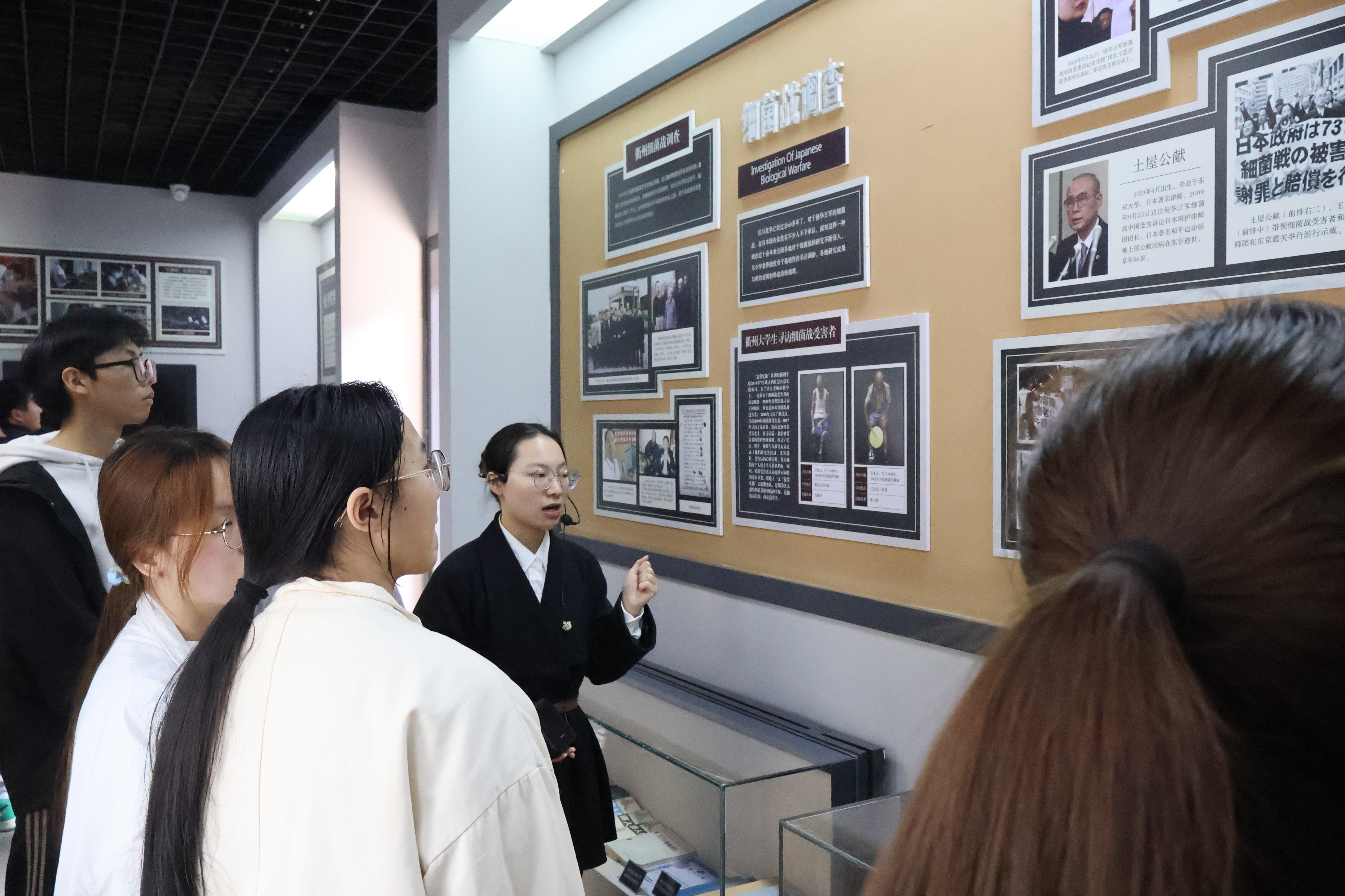 在侵华日军细菌战陈列馆,工作人员结合展陈内容,为学生讲解侵华日军在衢州开展细菌战给衢州人民带来的灾难,重点讲解中国共产党领导衢州人民抗战斗争的历史。入党积极分子杨同学感慨:“这种走出来亲眼见到照片和听到讲解的细节的形式,让我更深刻理解了过去衢州人民在战争中受到的苦难和抗战不屈的精神,我也能更加理解'请党放心,强国有我'的含义。”
