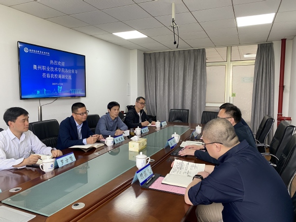 4月9日,调研团队在南京信息职业技术学院进行调研。双方就科研管理、科技成果转化及社会服务工作等内容,进行了全方位的沟通,结合两校发展实际,探讨优化路径。