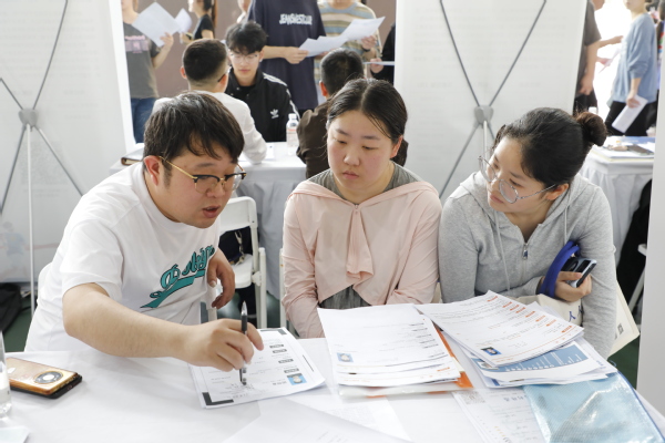 活动现场,政策咨询区与“简历问诊台”成为热门点位。30名就业指导老师将课堂放到了现场,为学生提供简历问诊、岗位定位等“一站式”服务,助力学子高效求职。