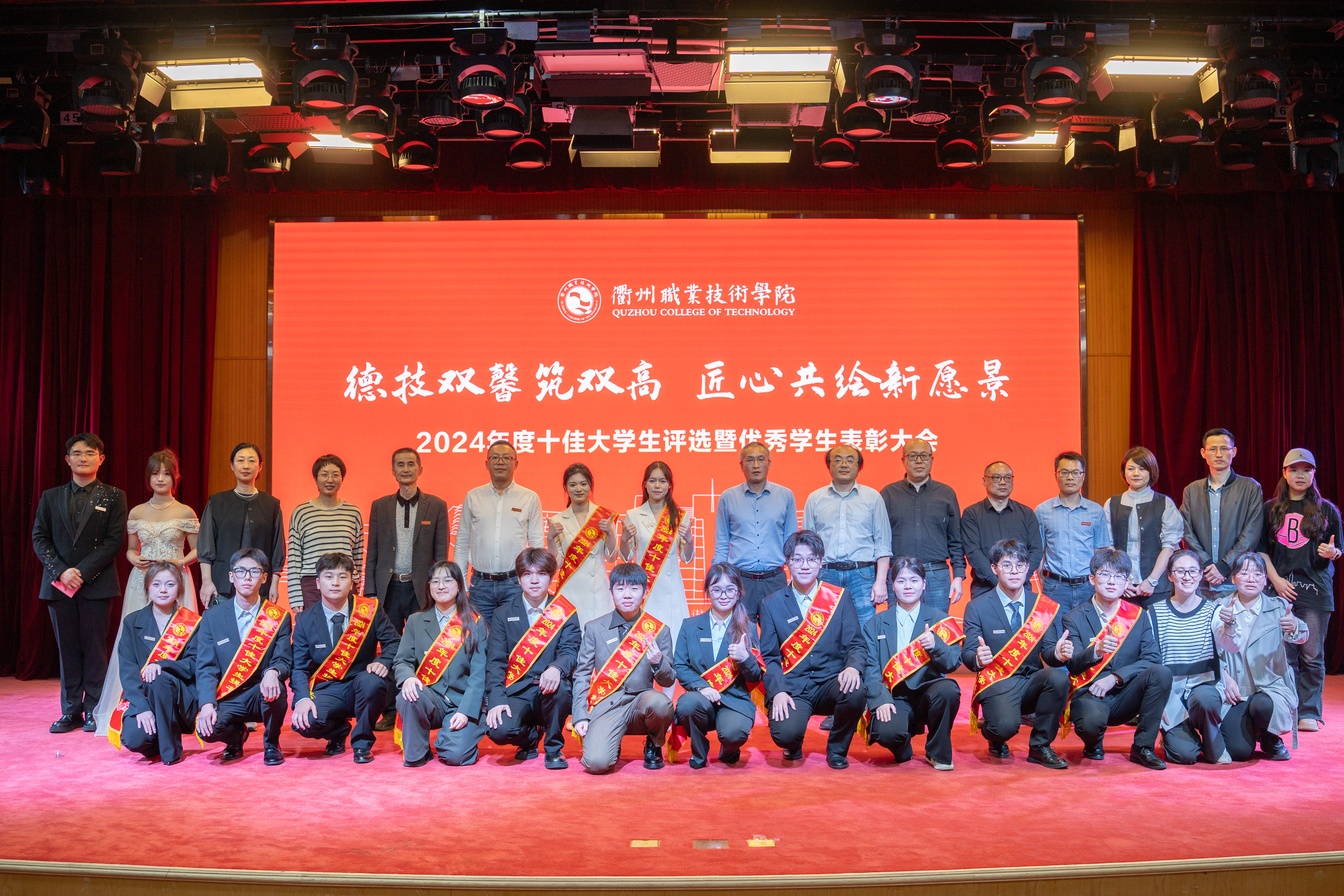 4月23日晚,我校举行2024年度“十佳大学生”评选暨优秀学生表彰大会,充分展示我校学生昂扬向上的精神风貌,激励广大学子展现青春作为、彰显青春风采、贡献青春力量。校党委副书记何百通出席,相关职能部门领导,各二级学院党总支书记、副书记、辅导员、学生代表等参加。