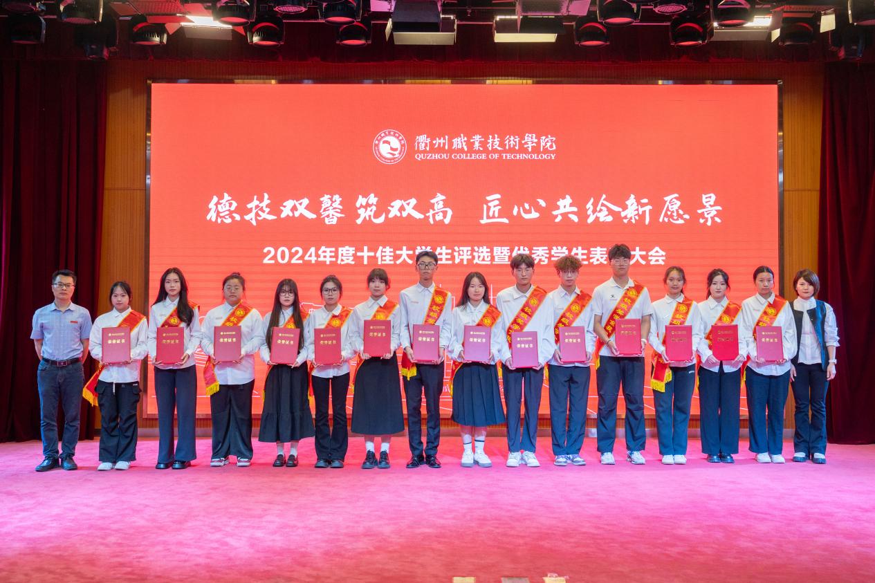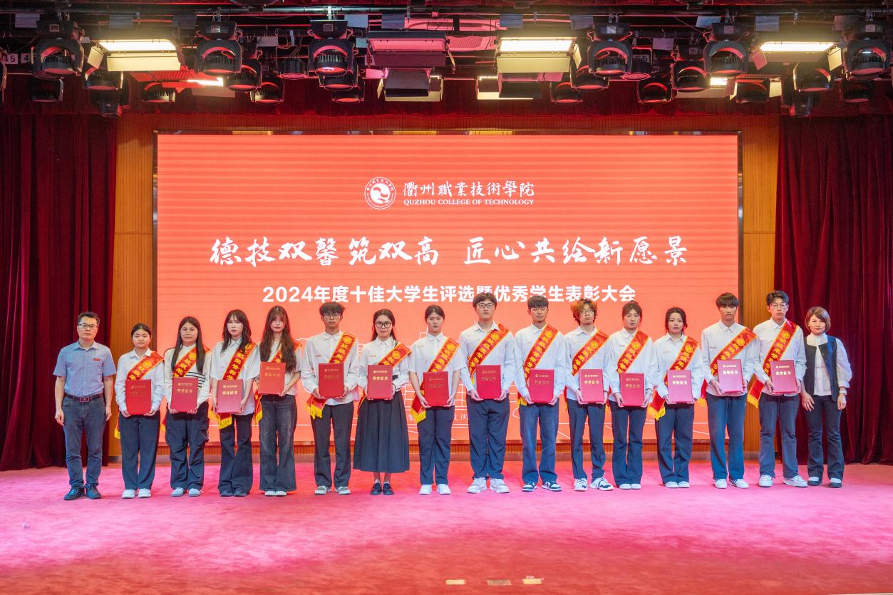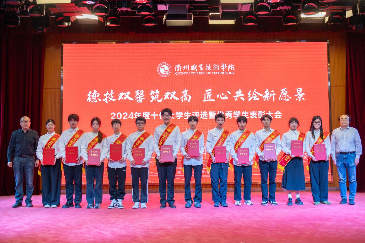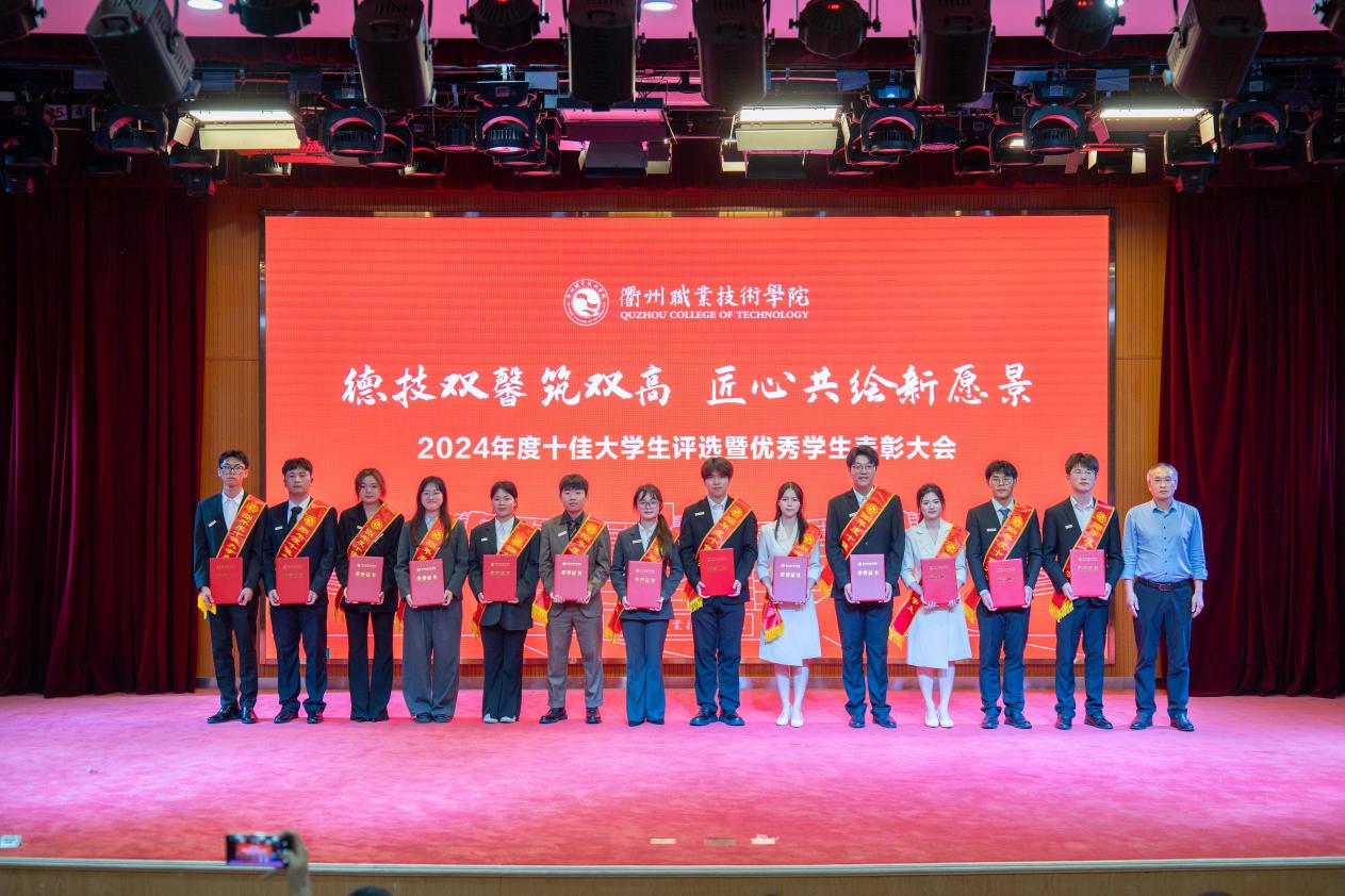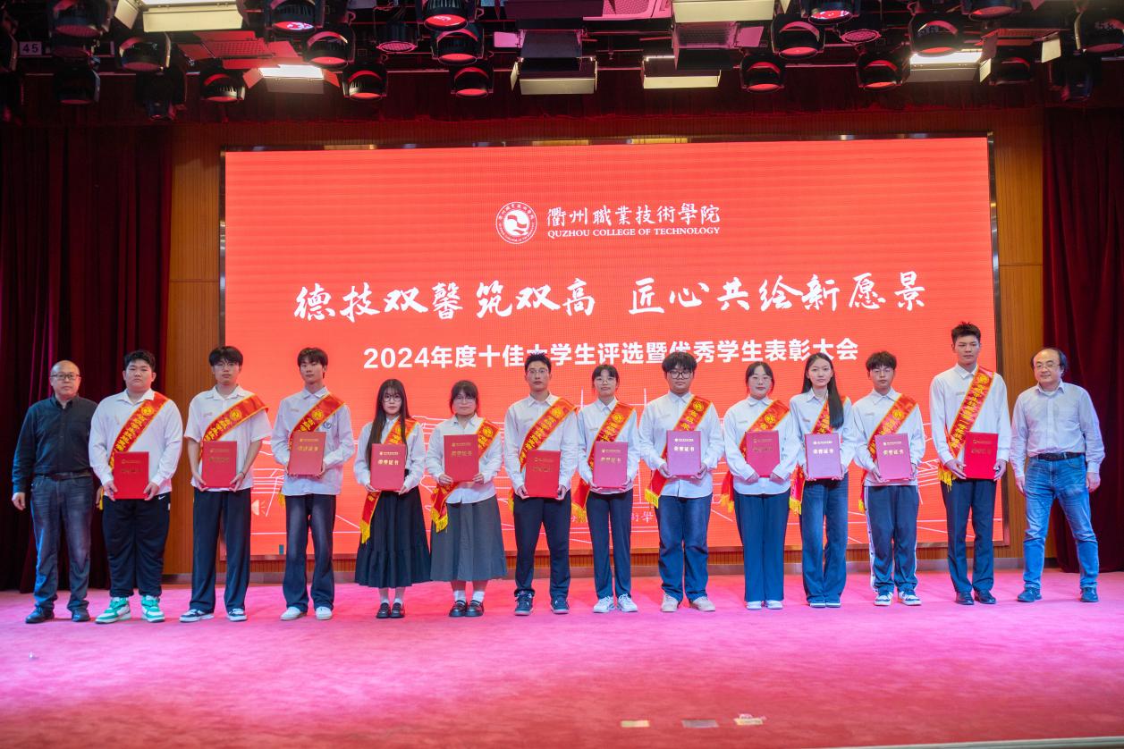 大会对过去一年取得优异成绩的学生集体和个人进行表彰,与会领导为获奖代表颁奖,包括国家励志奖学金185人、国家级学生技能(科技)竞赛25项、浙江省政府奖学金140人、省级学生技能(科技)竞赛一等奖赛项30项、省级学生个人荣誉称号2项、校级优秀学生奖学金1345人、校级学生个人荣誉称号805项、校级双优班11个。