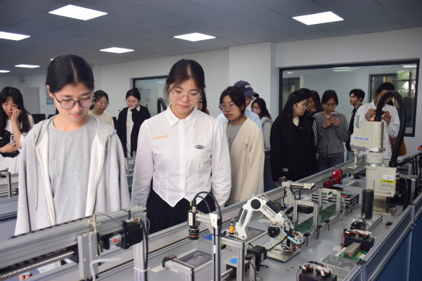 在机电工程学院,党员教师向发展对象展示了工业机器人的现代科技感。通过参观数控加工实训车间和机器人操作与运维等实训室,发展对象对“工业互联网”“智能制造”等概念有了更加直观的认知,对职业教育赋能制造强国战略有了更深入的思考。