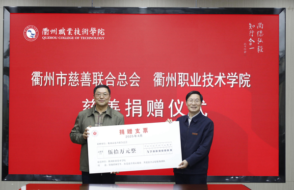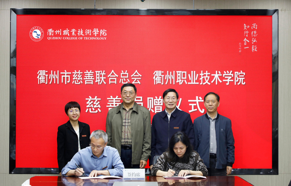 4月25日,衢州市慈善联合总会向我校捐助50万元善款用于爱心助学项目,衢州市慈善联合总会会长毛建民,衢州市慈善联合总会副会长王盛洪、副秘书长徐瑛,我校党委书记徐须实,党委委员、副校长徐浪静出席捐赠仪式,捐赠仪式由我校党委副书记何百通主持。