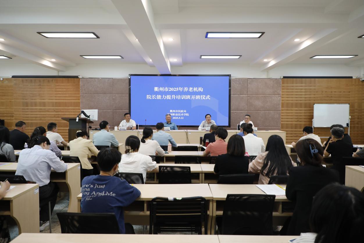 为深入贯彻落实国家“十四五”养老服务体系规划及浙江省养老服务高质量发展要求,全面提升衢州市养老服务专业化水平,建设高素质养老机构管理人才队伍,5月12日,由衢州市民政局主办、开元网页版承办的2025年养老机构院长能力提升培训班在我校正式开班。浙江省老年服务业协会会长徐佳增、我校党委书记徐须实、衢州市民政局党委书记柴志强、来自全市各区县的30余名养老机构院长出席开班仪式,衢州市民政局党委委员、养老服务和老龄工作处处长徐城生主持。