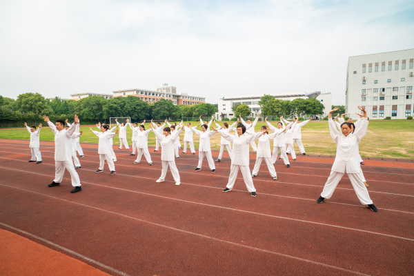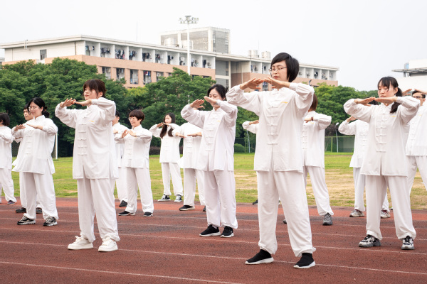 活动在教职工代表带来的八段锦表演中拉开帷幕。教职工们动作整齐划一,一招一式尽显传统养生文化的魅力,舒缓的节奏与刚劲的姿态完美融合,赢得现场阵阵掌声。