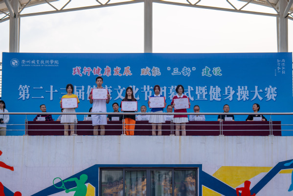 经过激烈的角逐,医学院、艺术设计学院代表队荣获金奖,经济管理学院、信息工程学院、机电工程学院、文化旅游学院、华友新材料学院代表队荣获银奖。何百通为获得金奖代表队颁奖,孔庆红为获得银奖代表队颁奖。