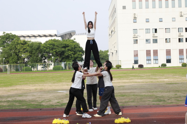 校健美操队的表演将现场气氛推向高潮,队员们身着靓丽服装,以高难度的托举、翻转动作和富有创意的编排,将力与美完美结合,点燃了全场的热情。