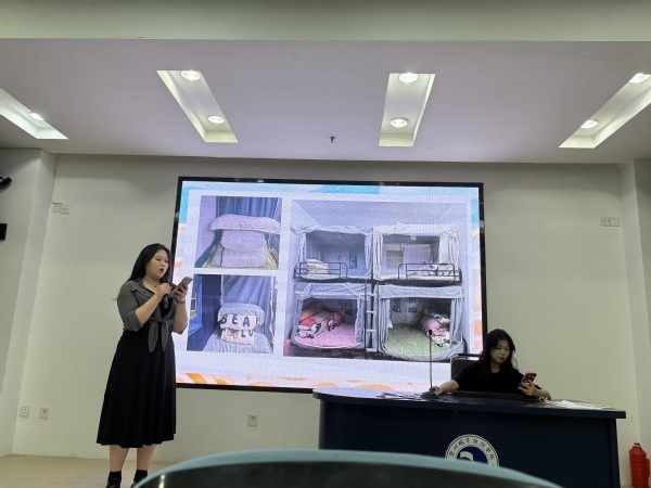 决赛现场气氛热烈,各寝室通过精彩纷呈的展示,充分展现了寝室的独特风采。决赛主要比拼两个部分。一是阐述“家”的故事。寝室成员们借助精心制作的PPT或短视频,配合饱含深情的演讲,生动讲述了属于他们“小家”的故事。从日常安全管理的严谨细致(如规范用电实拍),到卫生值日的井然有序(展示值日表),再到共同制定的文明公约和温馨和谐的相处点滴(集体活动照片),全方位展现了寝室在安全、卫生、文明、和谐四大方面的建设成果,传递了浓厚的“家”文化。二是阐述“家”的特色活力。各寝室成员齐心协力,通过形式多样的才艺展示,如幽默风趣的情景短剧、创意十足的短视频、声情并茂的合唱、活力四射的舞蹈等,充分彰显了寝室的独特个性、成员间的深厚情谊以及积极向上的青春活力。每一个节目都凝聚了室友们的智慧与汗水,赢得了现场观众的阵阵掌声和评委们的高度认可。