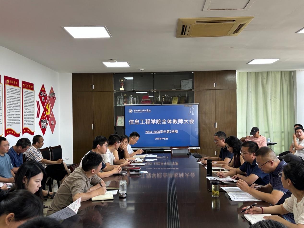 7月2日上午,信息工程学院在行政楼724会议室召开2024-2025学年第二学期期末全体教师大会。院长马文龙主持,院党总支书记廖建平讲话,全体教师参加会议。