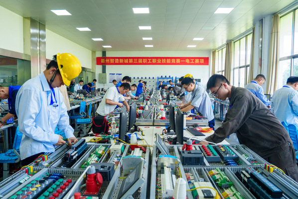 为推动产业工人队伍建设改革,大力弘扬劳模精神、劳动精神、工匠精神,8月7日至8月8日,衢州智造新城第三届职工职业技能竞赛在我校顺利举办。本次竞赛共吸引智造新城辖区内43家企业的131名选手在机修钳工、数控铣工、电工以及叉车工四个项目中展开同台竞技。四个项目共决出一等奖4名、二等奖8名、三等奖12名及优胜奖28名。其中,一等奖选手将被授予技师等级,并获评“衢州市技术能手”和“衢州市金牌职工”称号,其他奖项选手将获评高级工等级。