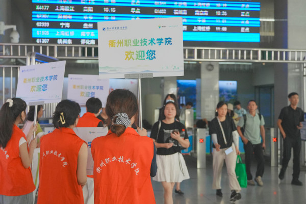 志愿者们也活跃在各个角落,火车站、汽车站、寝室楼,积极的帮助他们搬行李,引导他们至接驳车上和宿舍楼下。志愿者们用最热情的帮助和最温暖的笑容迎接着他们,“同学,我帮你拿!” ”同学,往这边走!“ 一句句简单的话语,让他们在衢州感受到了家的温暖。