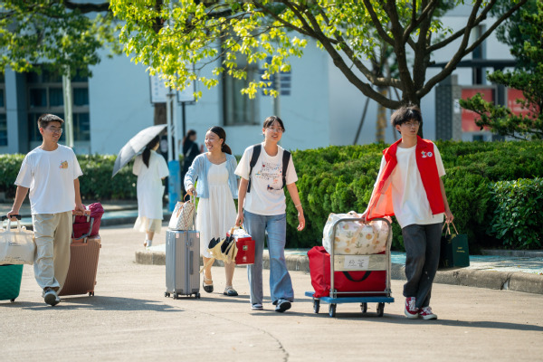 寝室阿姨早早守在了宿舍楼,帮新生核对信息、发钥匙,叮嘱生活事项;保安叔叔巡逻值守、指引停车、帮搬行李;维修师傅也在校园里仔细检查各类设施,他们都用行动让大家倍感安心。