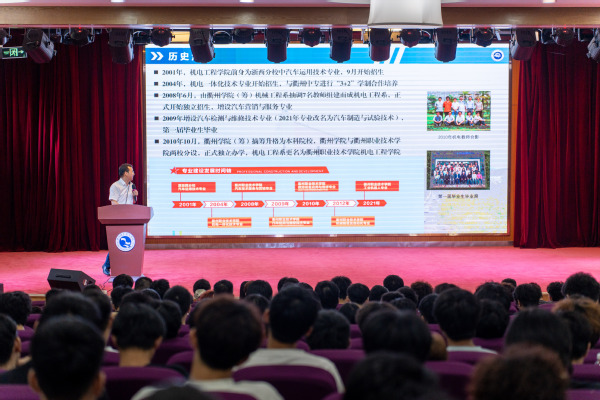 朱峻向新生们系统介绍了学院的基本情况,随后结合行业动态对当前就业形势与机电领域发展前景进行了深入分析。他叮嘱同学们要尽早树立清晰的学习与发展目标,并围绕新环境下的学习适应给出了真诚建议。