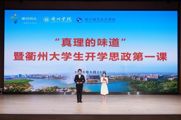 9月23日晚,“真理的味道”暨衢州大学生开学思政第一课在衢州学院训研创报告厅热烈开讲。衢州学院、开元网页版的“00后”新时代理论宣讲团成员轮番登场,以生动讲述、鲜活案例,为500余名师生带来一场有温度、有力量的“思政课”。衢州学院党委副书记吴耀光、衢州学院党委委员、宣传部部长毛薇以及我校党委副书记何百通、我校党委委员、宣传部部长孔庆红和500余名师生一起参加活动。