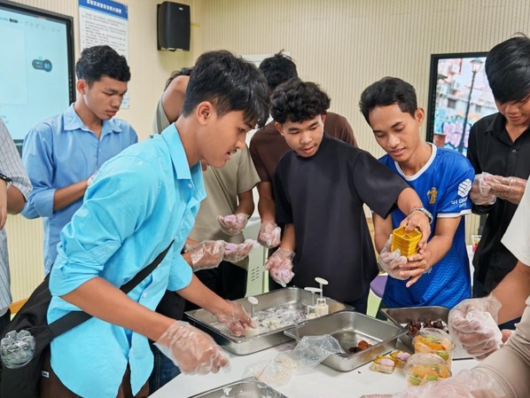 恰逢中秋佳节临近,对初来乍到的柬埔寨学子而言,这个象征团圆的节日,成为了他们感知中华传统文化温暖而美好的第一课。9月29日,一场别开生面的中秋主题活动在校园里温情上演。柬埔寨学子们第一次深入了解了中秋节的传说与习俗,更在食堂工作人员的指导下,亲手尝试制作冰皮月饼。从揉面、包馅到压模成型,每一个步骤都充满了新奇与乐趣。中外学子并肩协作,欢声笑语不断,在互动中迅速拉近了彼此的距离。来自柬埔寨的留学生PHAL SAMPHORS在活动中显得格外兴奋。她捧着自己制作的月饼,开心地分享道:“这是我第一次在中国过中秋节,月饼非常美味,中国的传统文化太有魅力了!我很喜欢开元网页版,这里的老师和同学都非常友好。我期待在这里学习先进的专业知识,也希望能更多了解中国的历史和文化,交到很多中国朋友。”简单的话语,流露出她对未来学习生活的无限向往与期待。